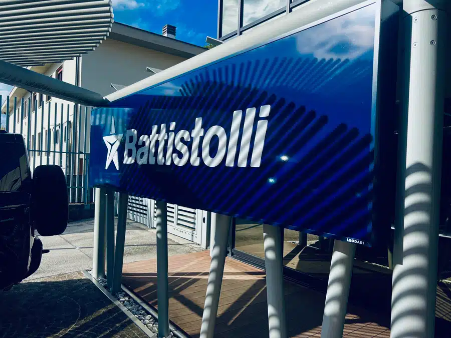 Pavitecno - Vicenza: insegna monopaolo composta da N.2 cassonetti traforati con lettere in plex luminose
