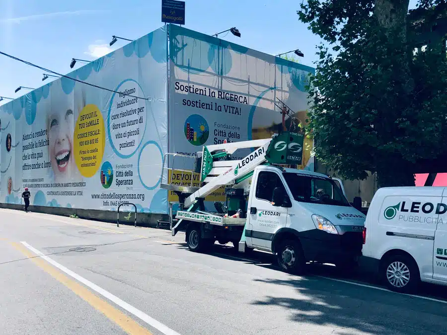 Grazie a posizioni prestigiose nel Veneto proponiamo l’uso di striscioni pubblicitari, stendardi, arazzi e gonfaloni personalizzati. Gestiamo in esclusiva le 32 posizioni del Comune di Vicenza. Inoltre produciamo bandiere istituzionali, festoni di bandierine per inaugurazioni e festeggiamenti. Pensiamo a tutto: progetto, realizzazione, installazione e pratiche burocratiche.